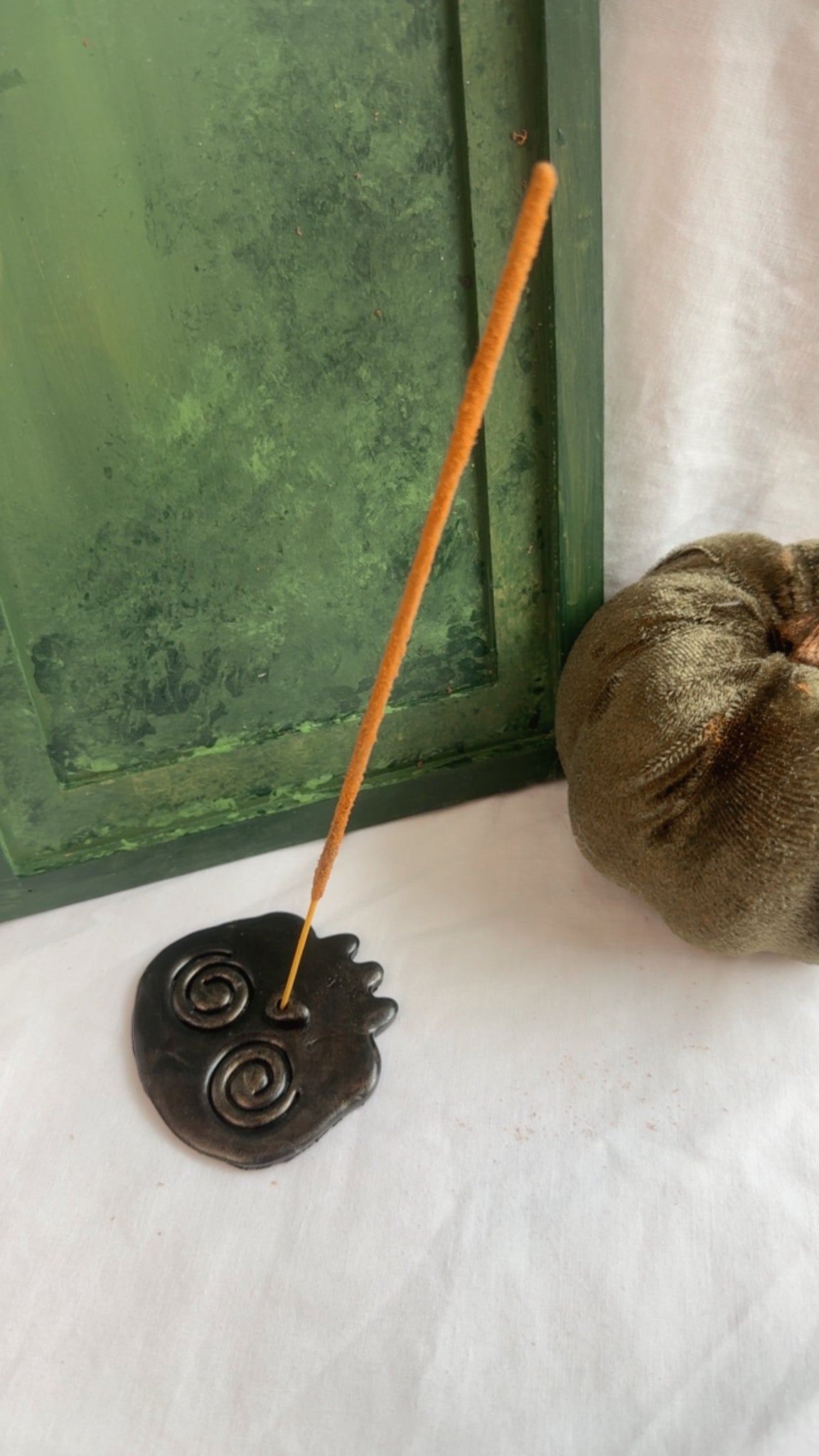 Perfectly lightweight and portable. This small gold sheened incense holder is great for on the go or spooky season decor