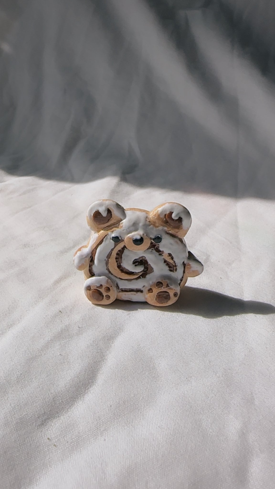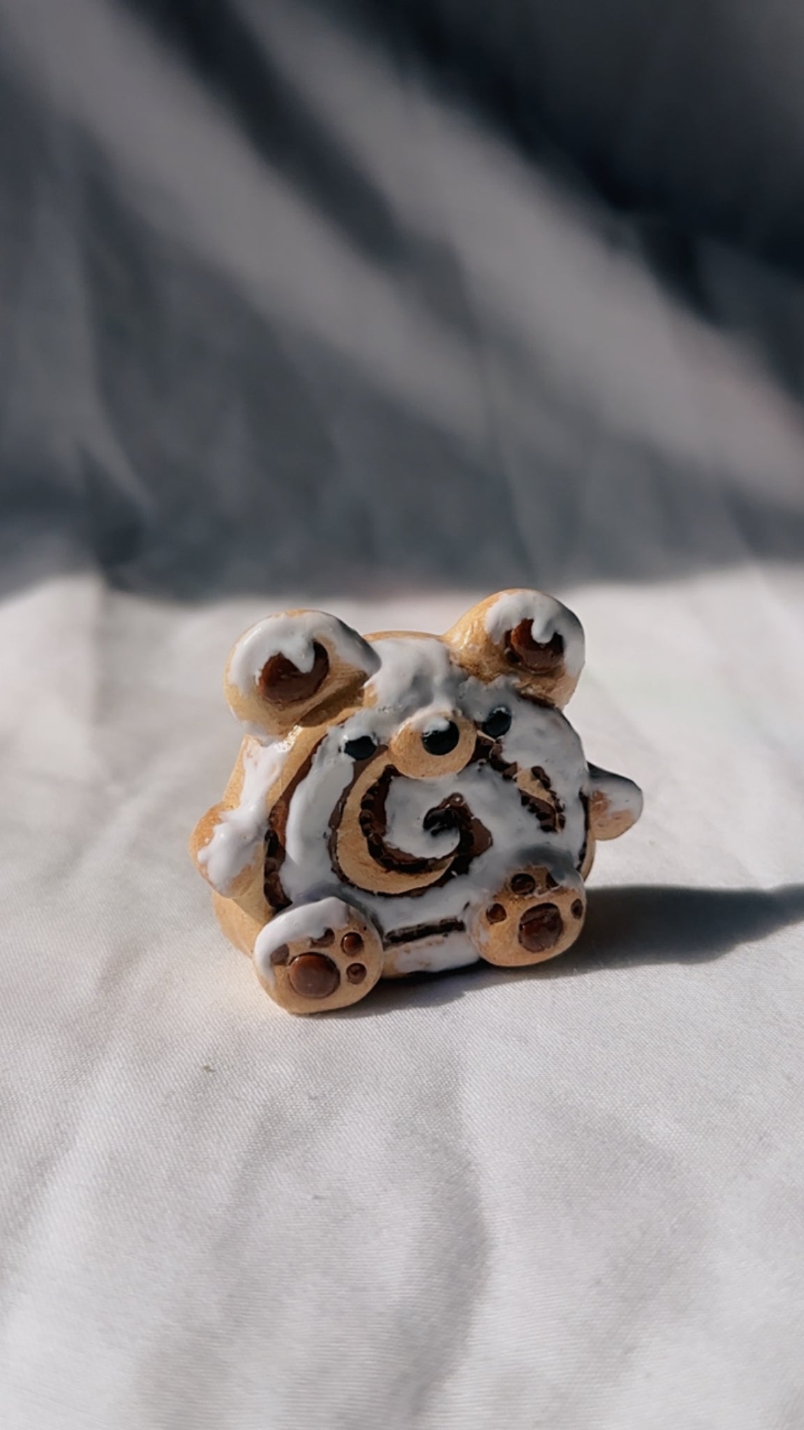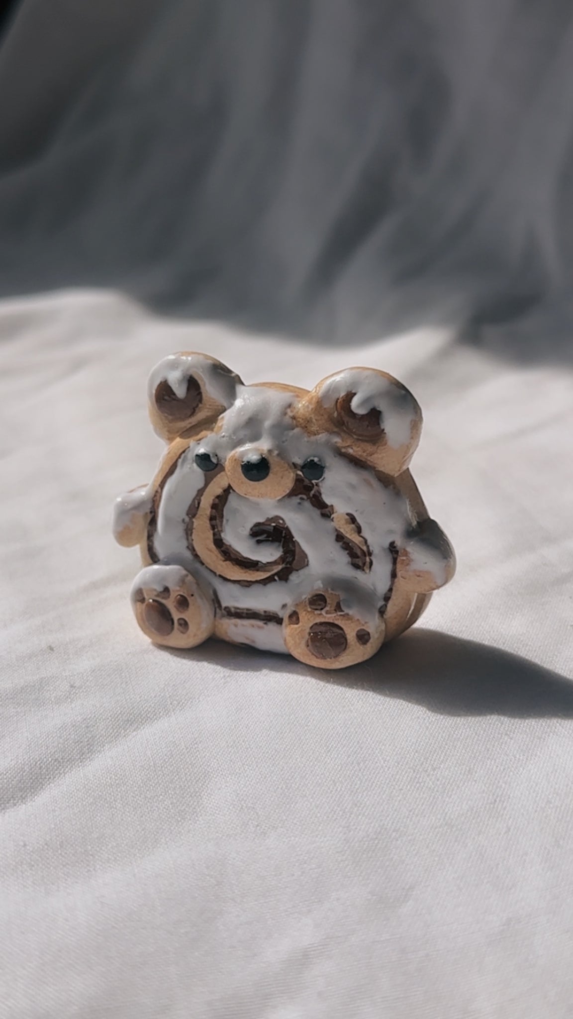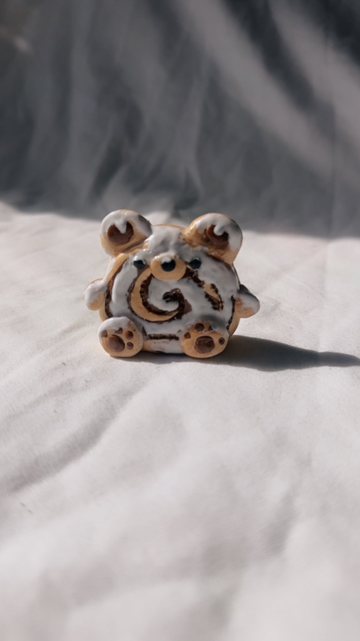 Polymer clay bear figurine in shape of cinnamon swirl
